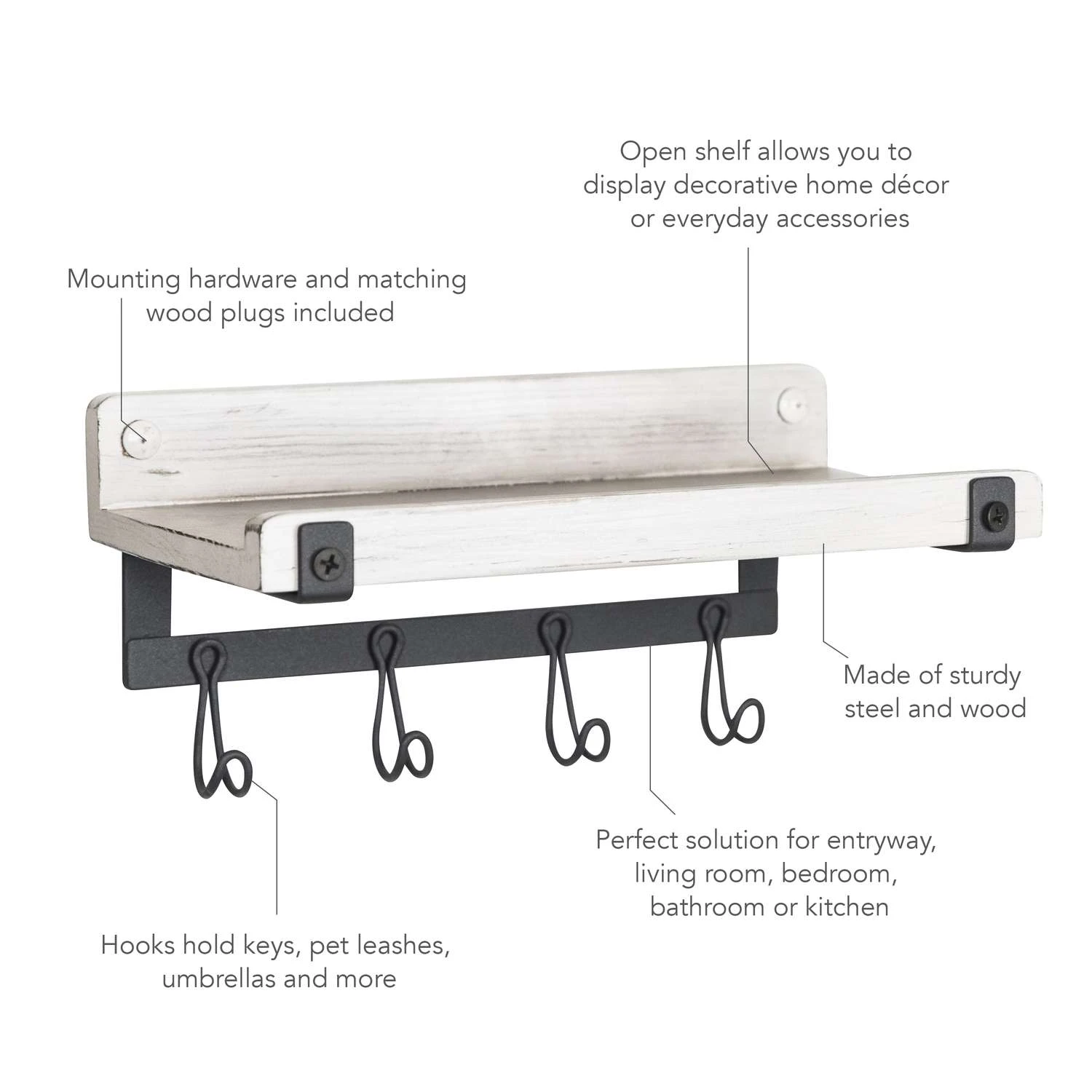 Be the first to review “Spectrum 4.5 In. H X 4.75 In. W X 9 In. L White Wash/ Industrial Gray Steel/Wood Wall Mount Hook Sta” Cancel reply