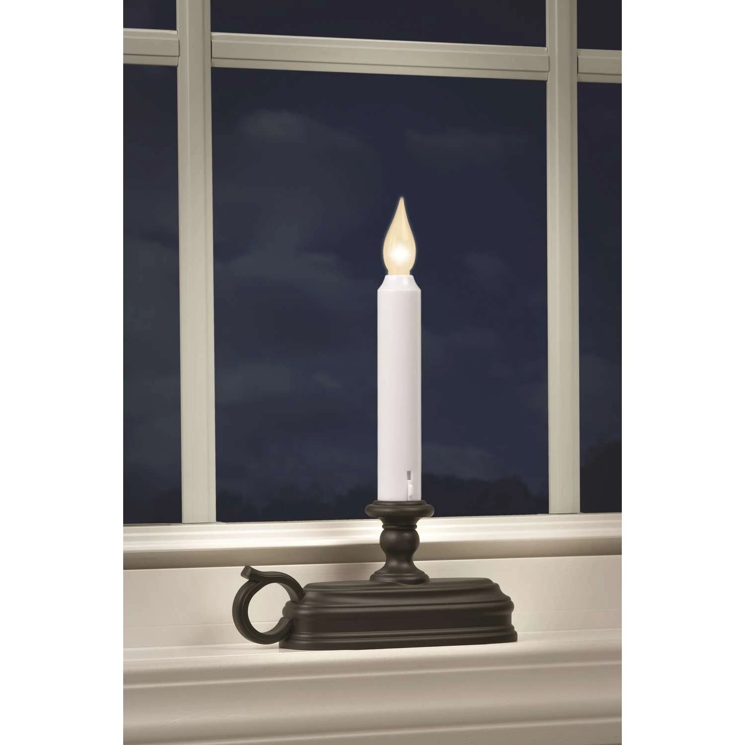 Xodus Innovations is a manufacturer of electronic products for the north american consumer market. We are dedicated to developing and marketing unique products with high quality and value added features that meet customer needs for better performance, longevity and usefulness. With over 50 years of experience in developing products across various markets, we use our extensive insight and proven success to deliver products that meet customer expectations. Tilt to change LED flame color from amber to warm white The most popular LED window candle design with white candle and aged bronze finish deluxe base Illuminates with a traditional amber or contemporary warm white flame, simply tilt the candle Light sensor turns the candle on at dust and off at dawn 3 position switch are off/3D/steady on LED light source never needs to be replaced Uses 2 C alkaline batteries (not included)